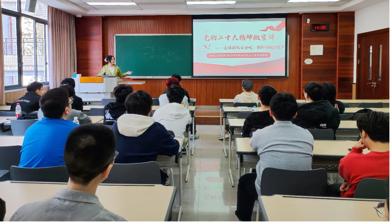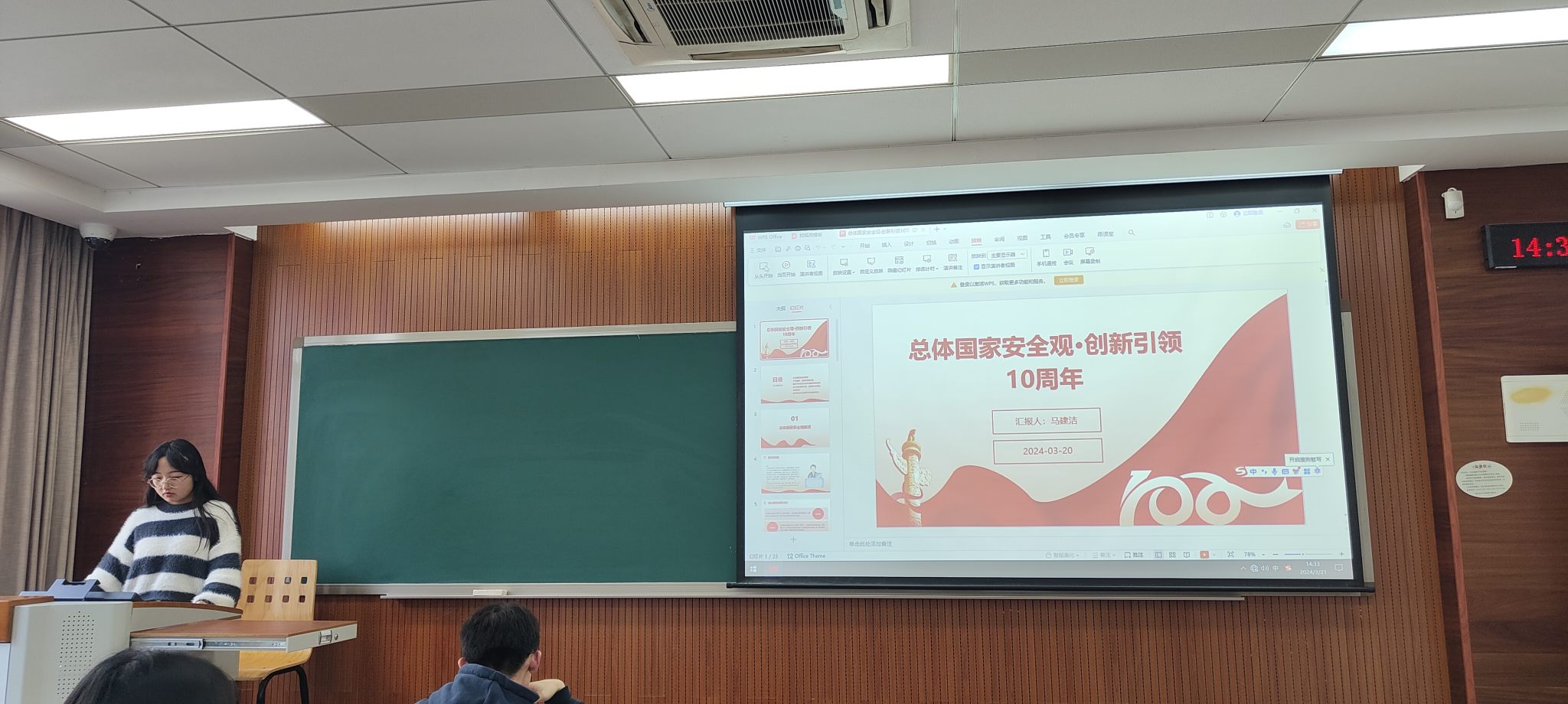3月21日下午本科生各团支部在虎溪校区一教学楼分教室进行主题学习,各支部团支书主持活动。团支书围绕党的二十大精神开展学习宣讲,并结合视频学习,带领支部团员及青年一道深刻理解和把握总体国家安全观,增强团员和青年的国家安全意识。