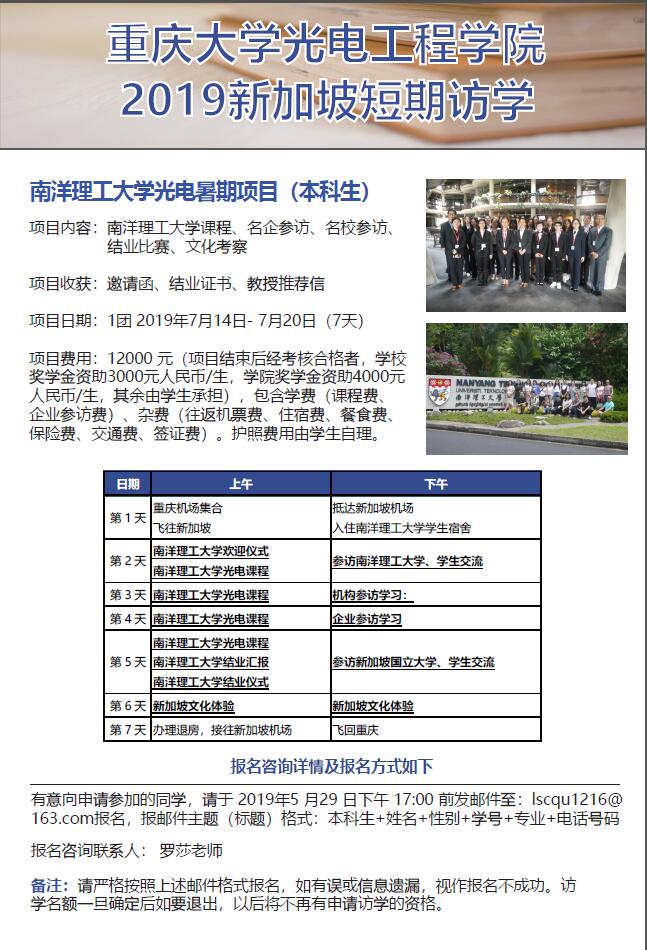 关于威廉体育williamhill2019新加坡短期访学报名的通知