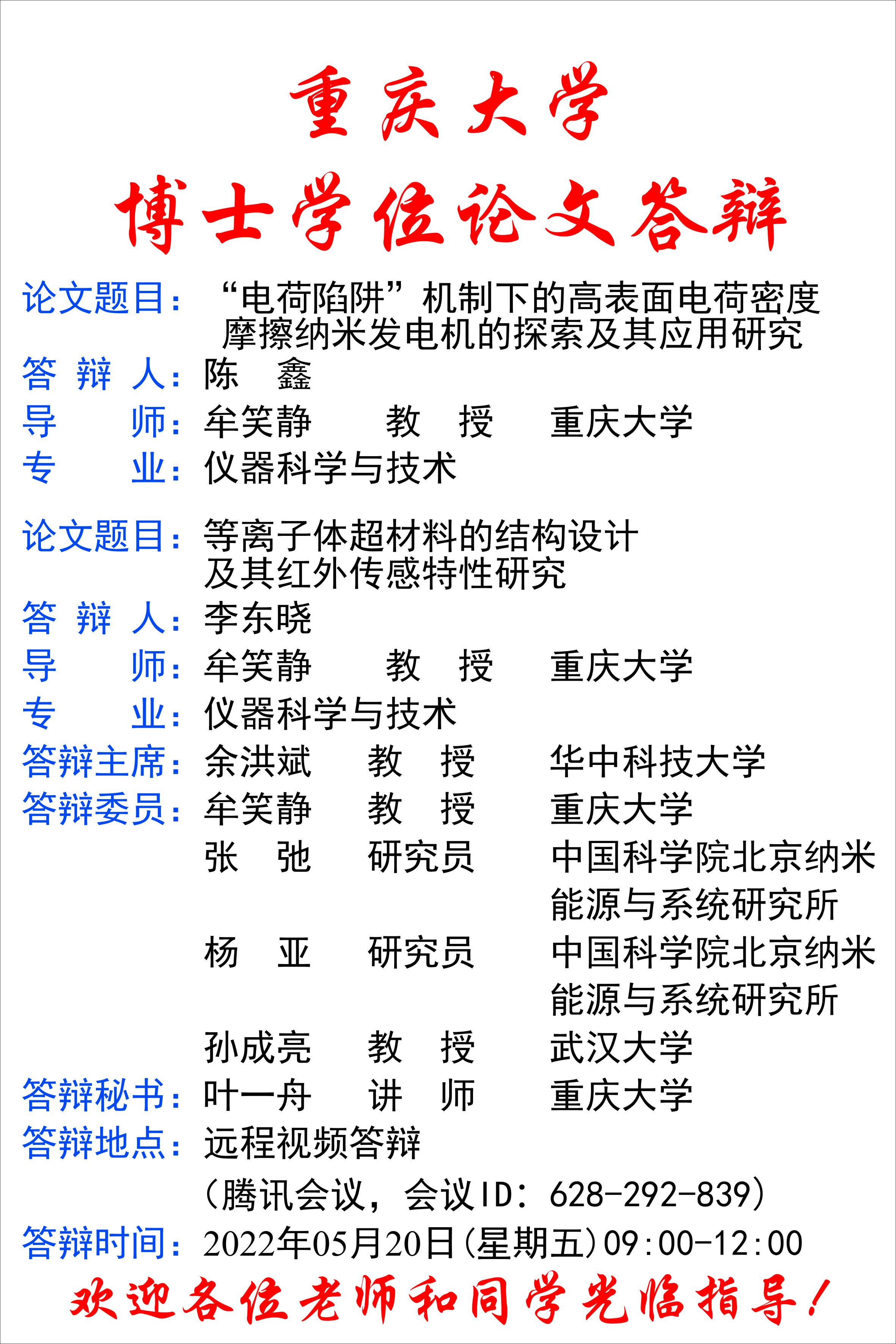 陈鑫、李东晓博士学位论文答辩公告