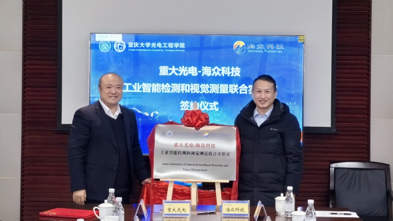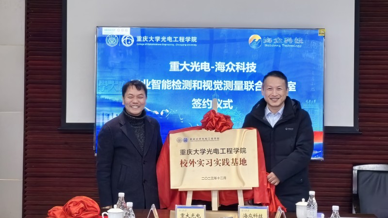 2023年12月21日下午,威廉体育williamhill与重庆海众科技有限公司成立“重大光电—海众科技工业智能检测与视觉测量联合实验室”及校外实习实践基地签约暨揭牌仪式在威廉希尔williamhill官网A区主教学楼教515会议室举行。