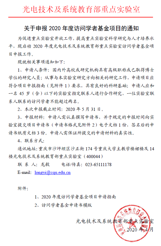 2020光电技术及系统教育部重点实验室访问学者项目申请通知.pdf