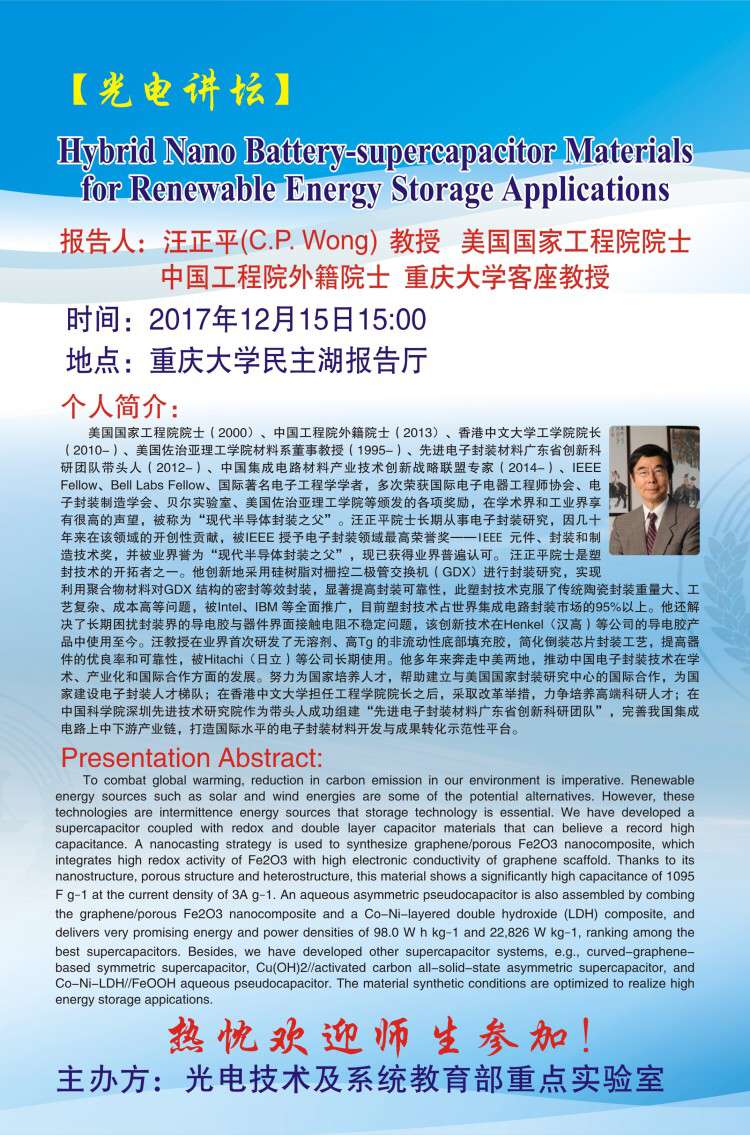 【光电论坛】Hybrid Nano Battery-supercapacitor Materials for Renewable Energy Storage Applications