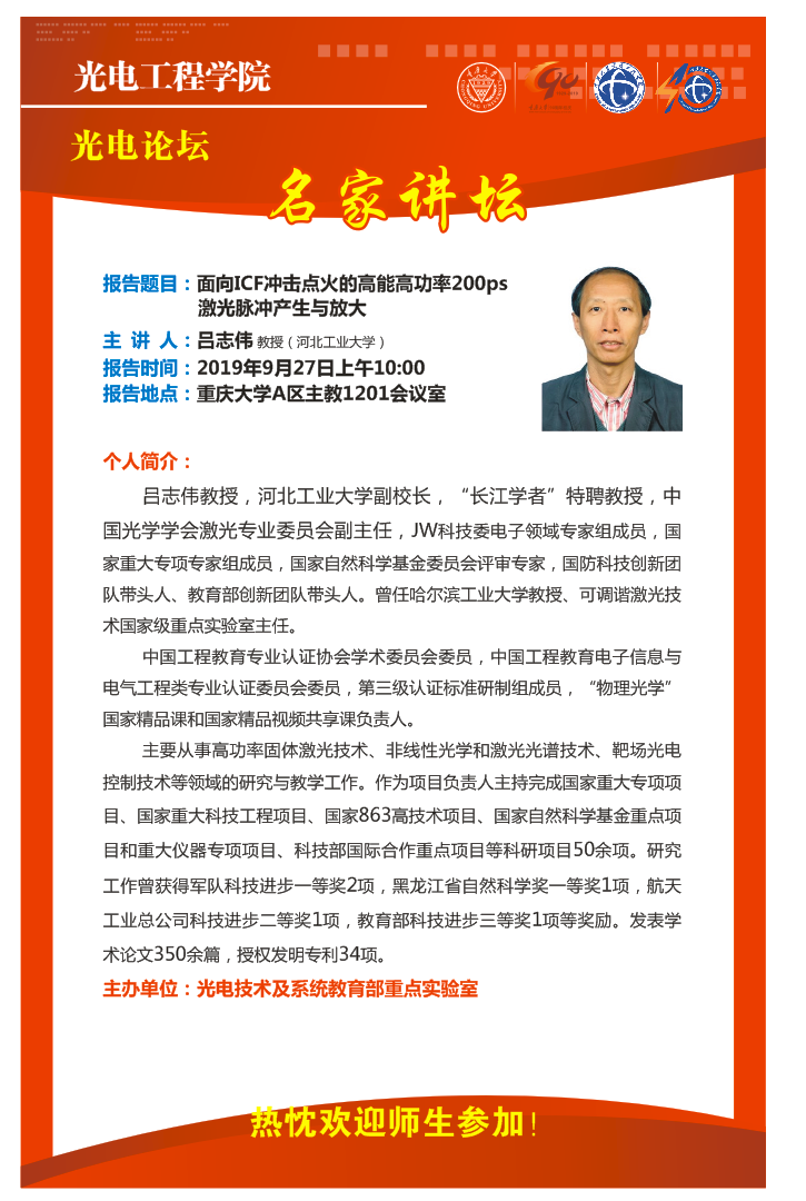【光电论坛】面向ICF冲击点火的高能高功率200ps激光脉冲产生与放大