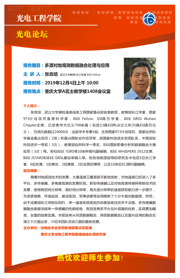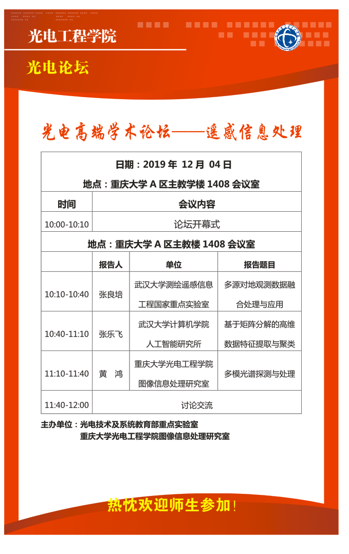 【光电论坛】光电高端学术论坛—遥感信息处理