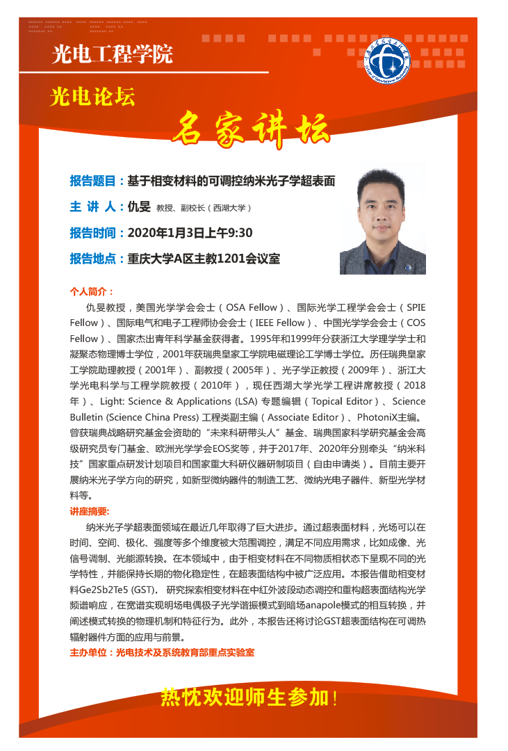 【光电论坛】基于相变材料的可调控纳米光子学超表面