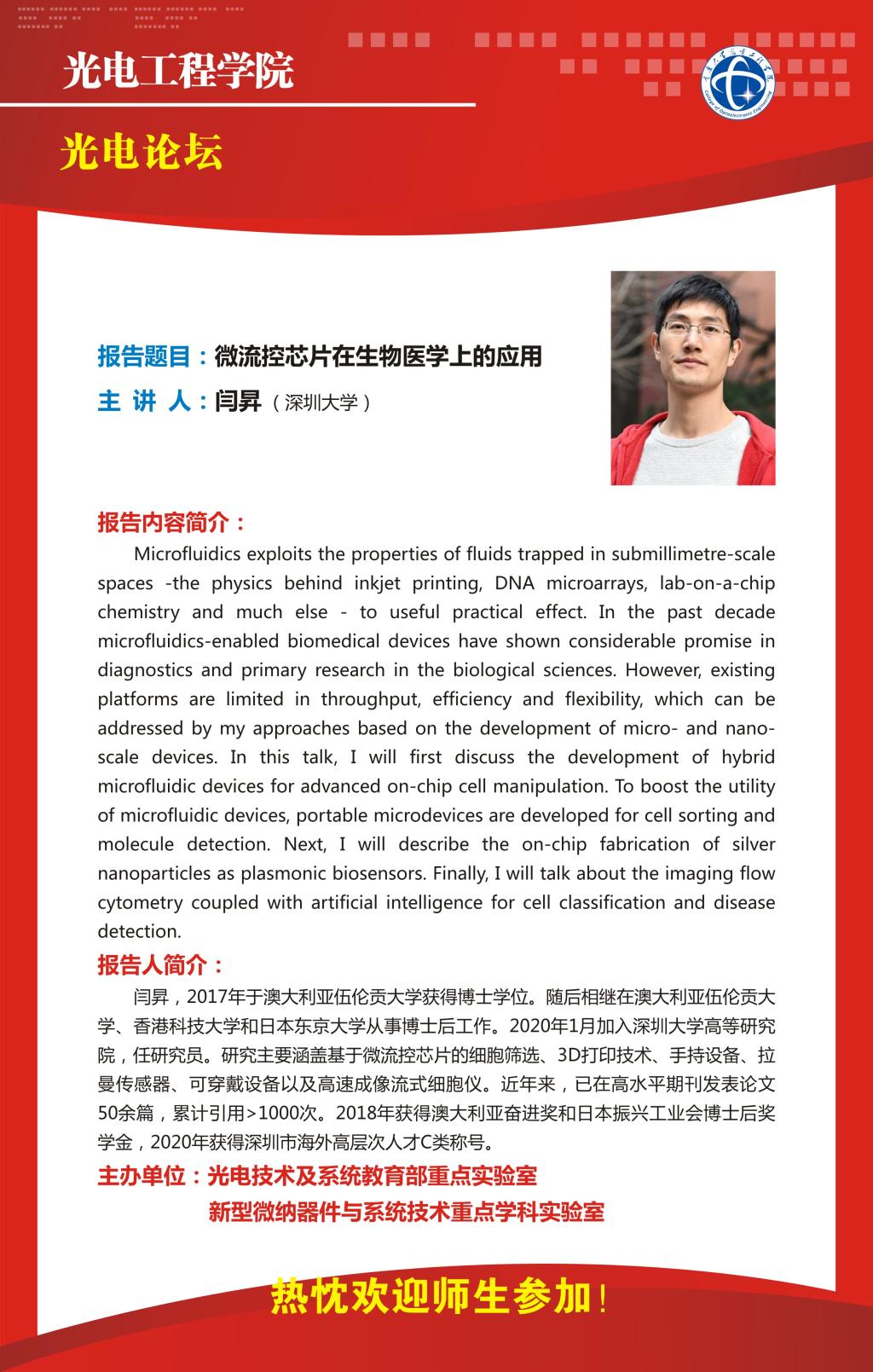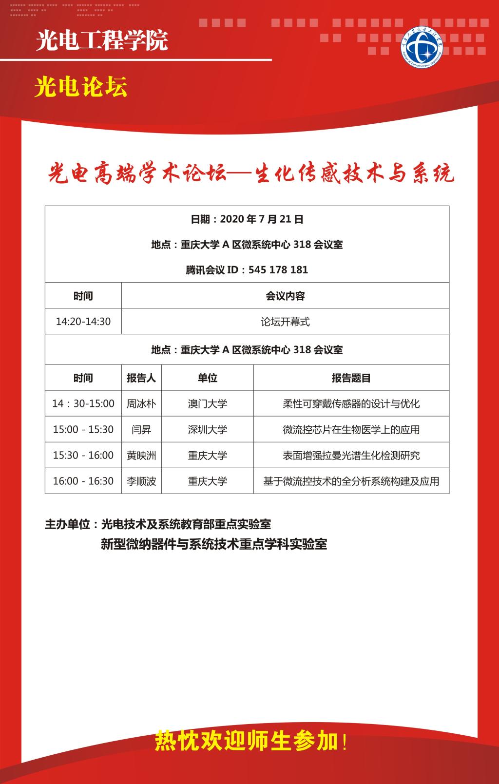 【光电论坛】光电高端学术论坛—生化传感技术与系统