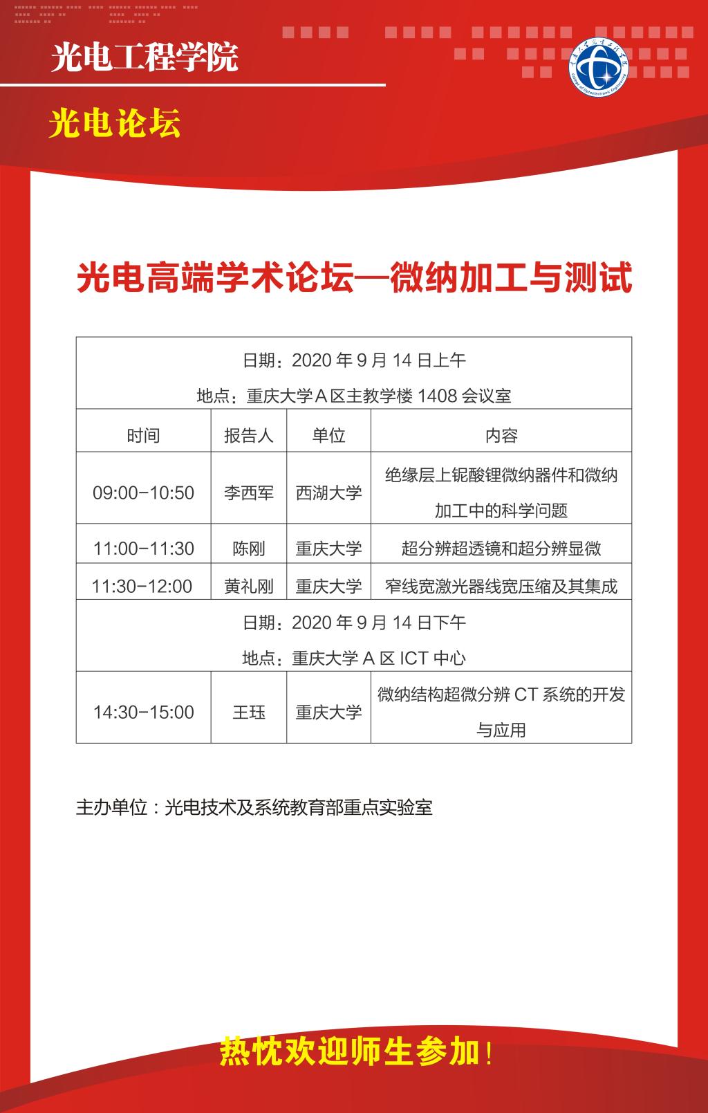 【光电论坛】光电高端学术论坛—微纳加工与测试