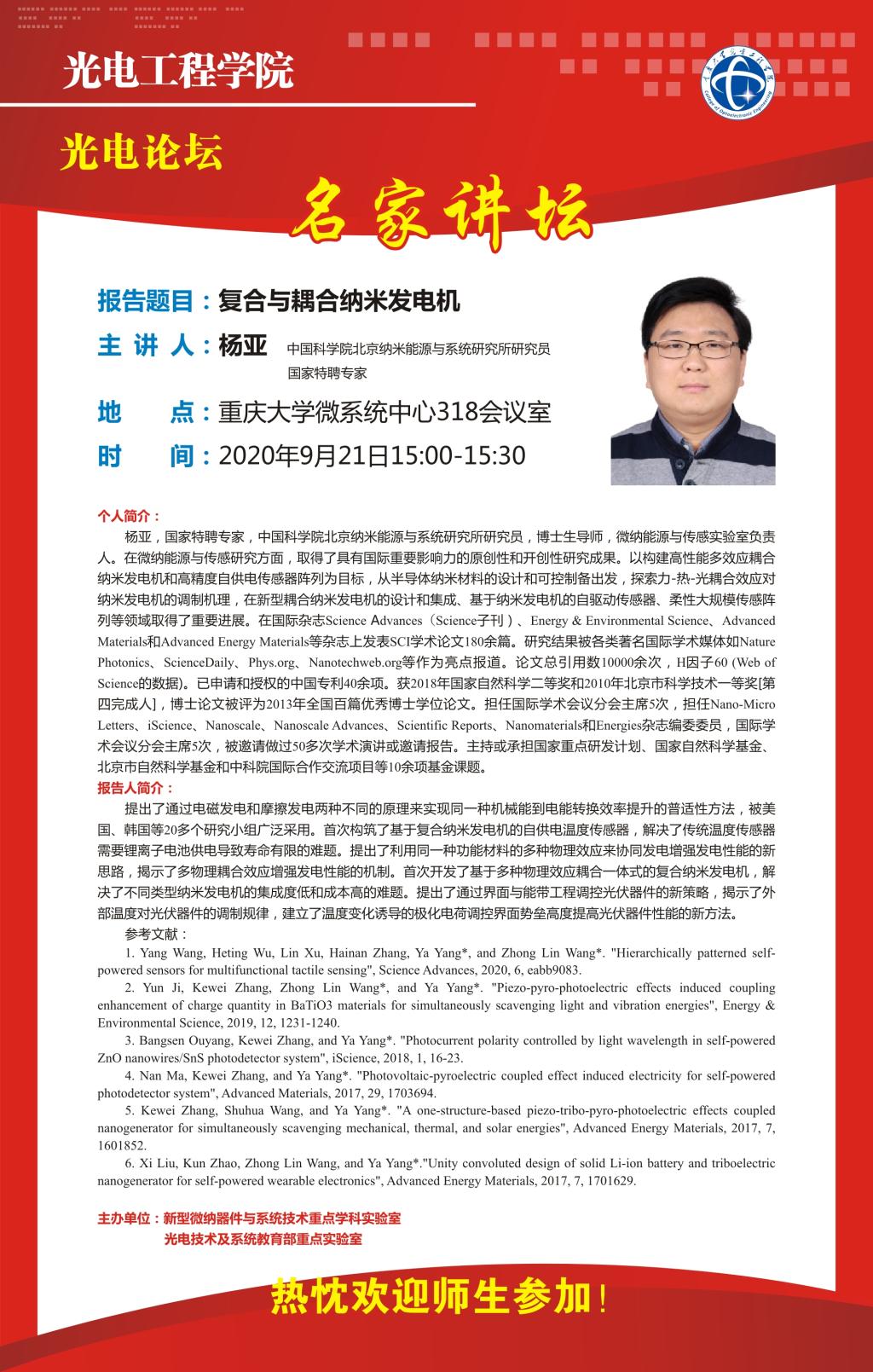 【光电论坛】复合与耦合纳米发电机