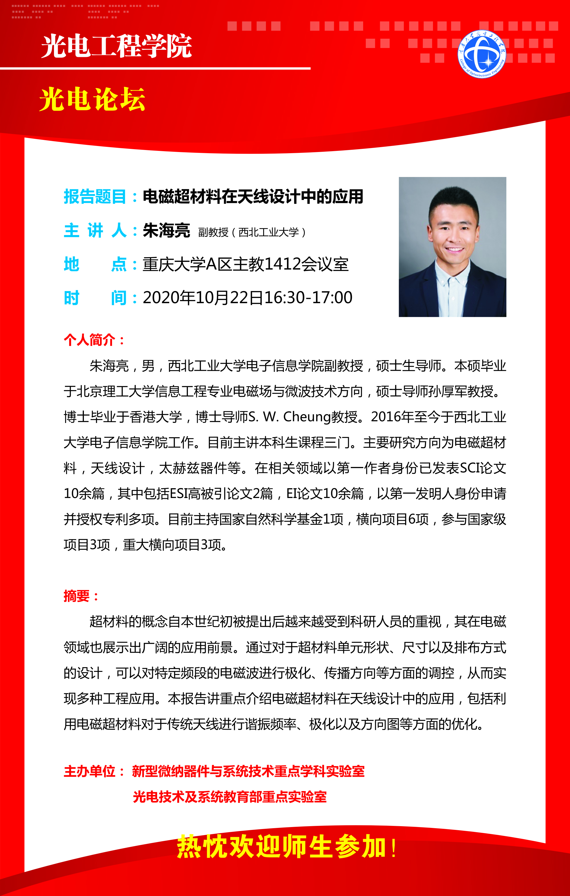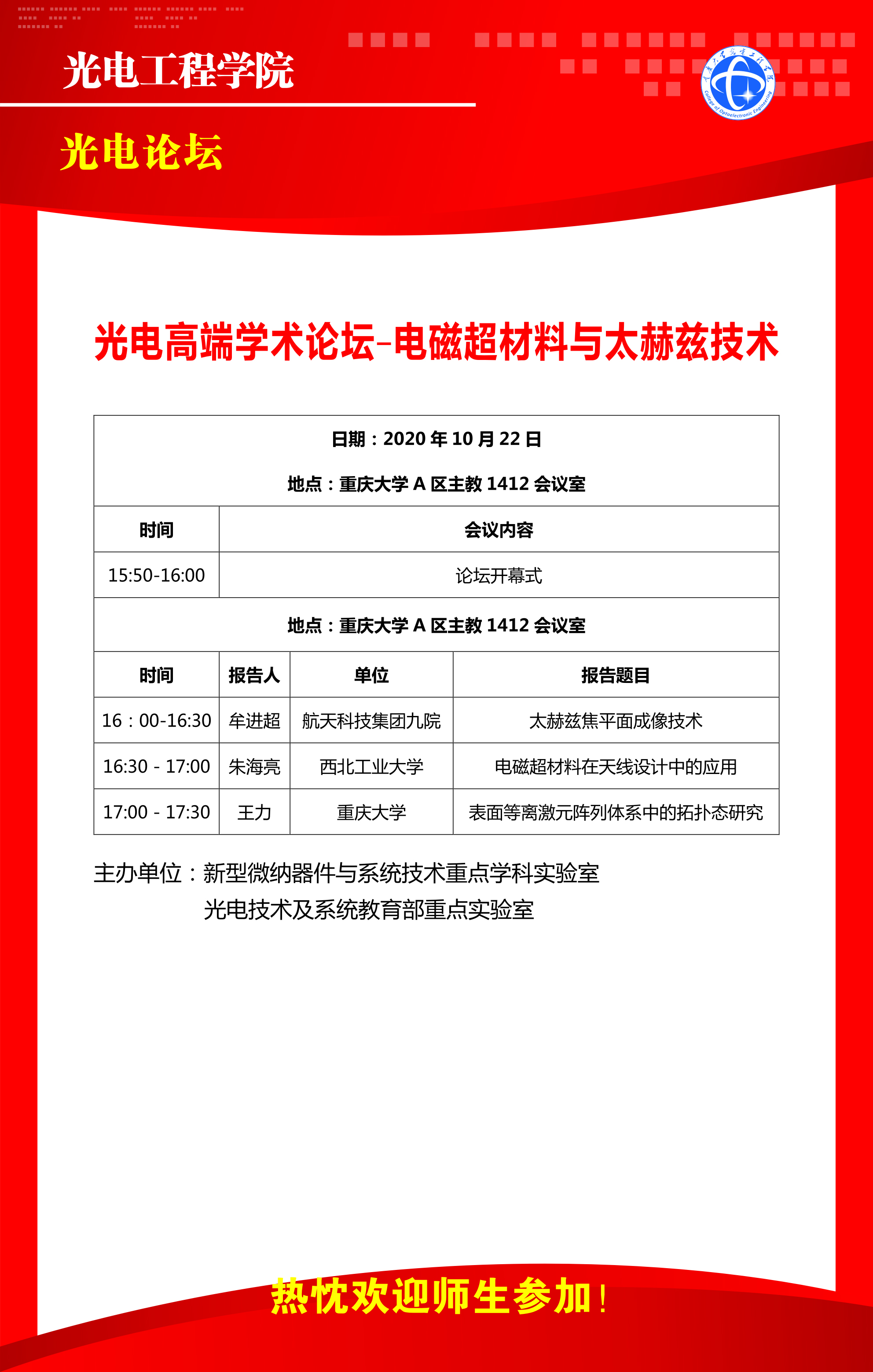 【光电论坛】光电高端学术论坛—电磁超材料与太赫兹技术