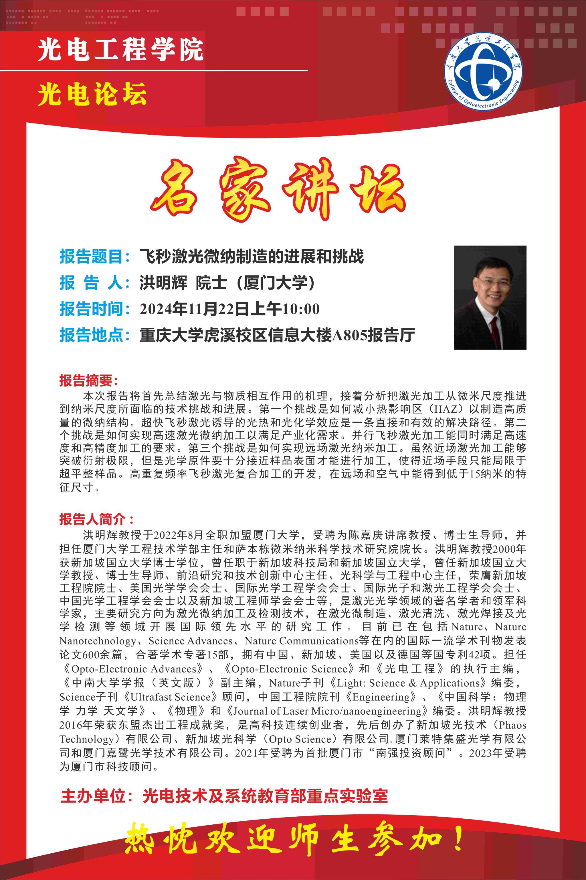 【名家讲坛】飞秒激光微纳制造的进展和挑战