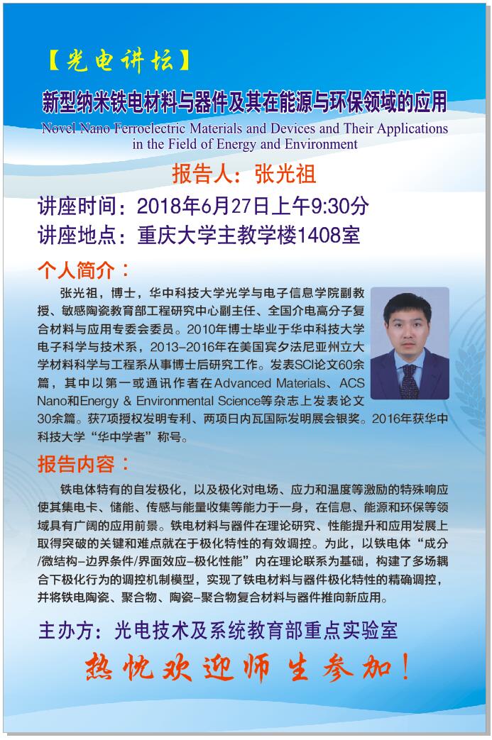 【光电论坛】新型纳米铁电材料与器件及其在能源与环保领域的应用