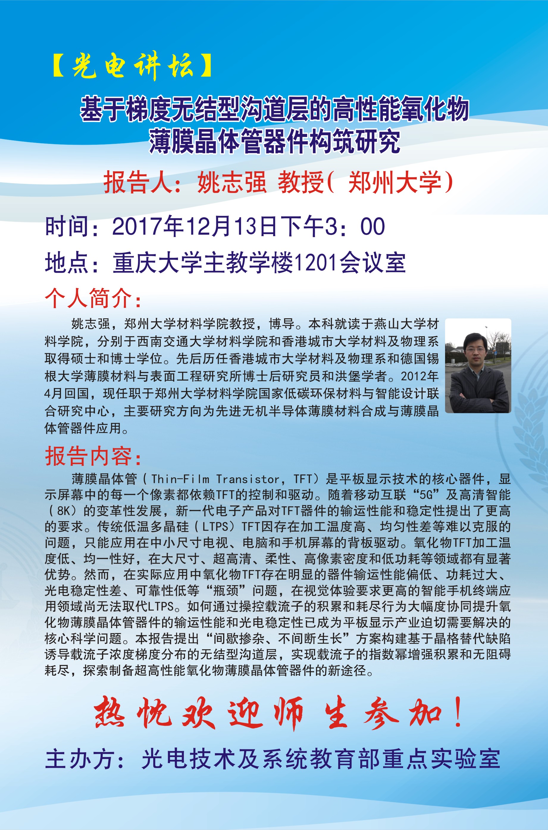 【光电论坛】基于梯度无结型沟道层的高性能氧化物薄膜晶体管器件构筑研究
