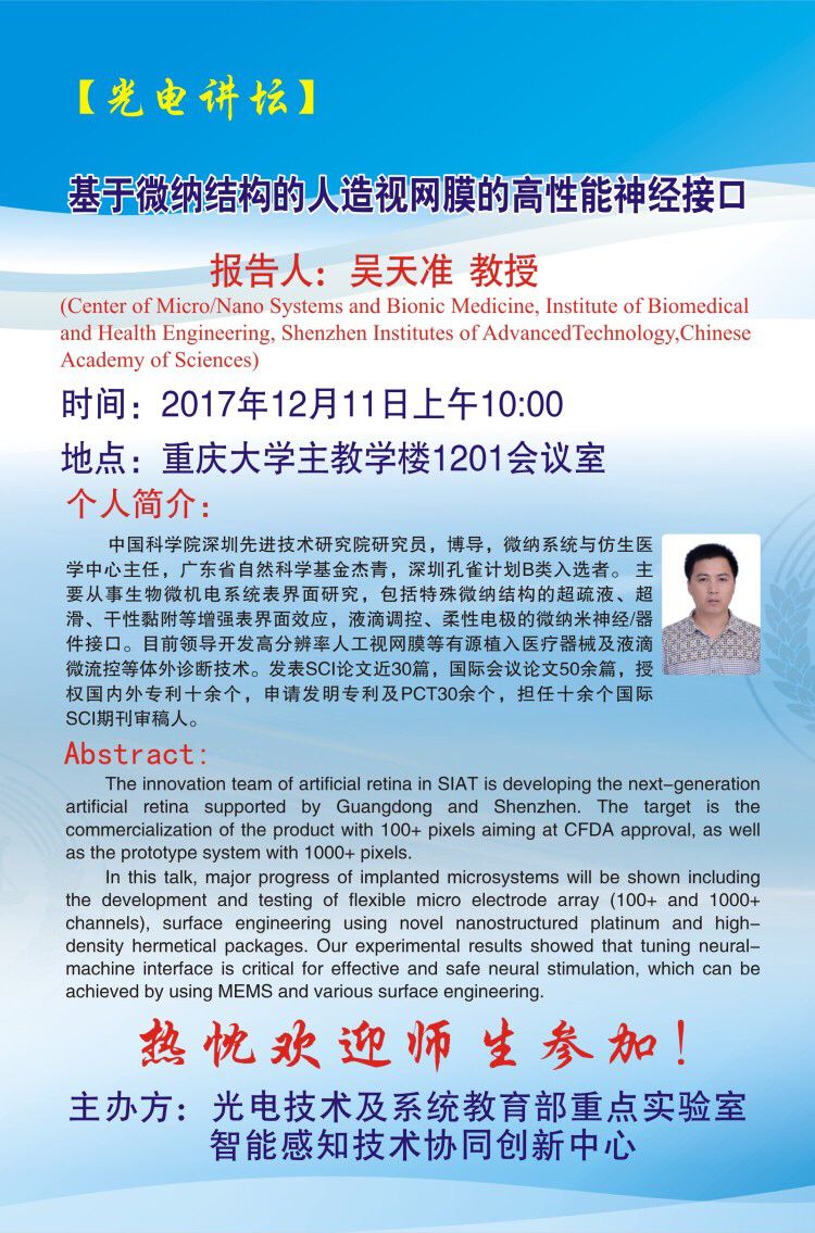 【光电论坛】基于微纳结构的人造视网膜的高性能神经接口