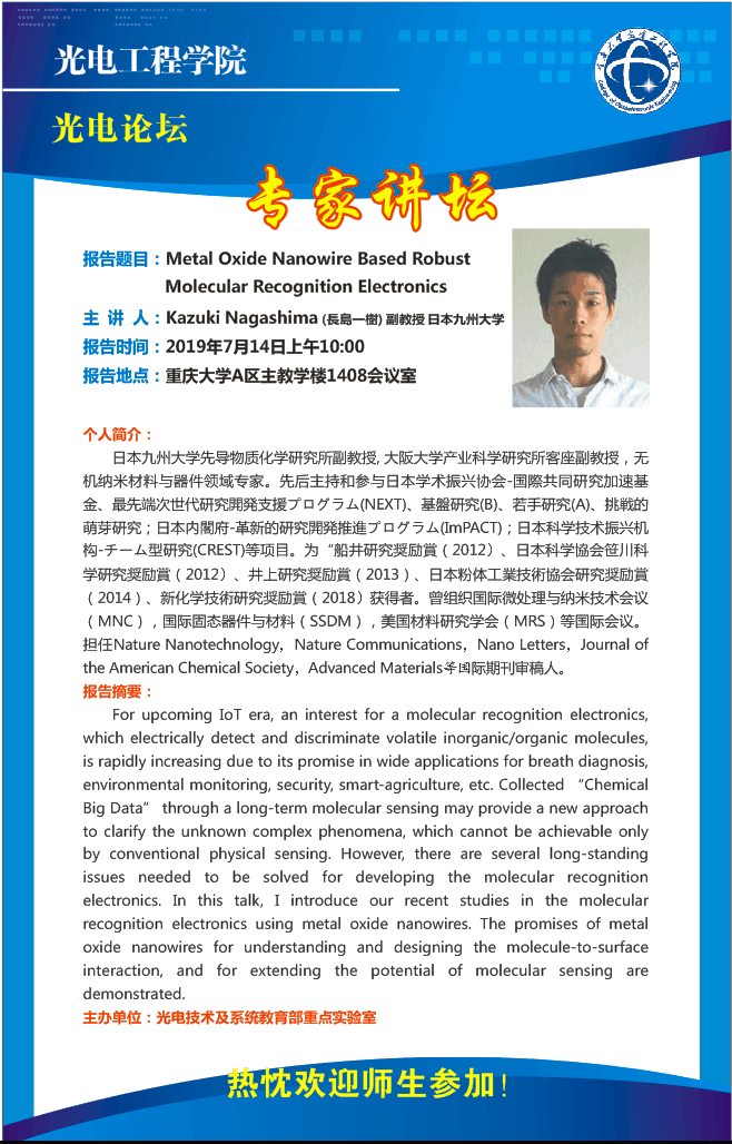 【光电论坛】Metal Oxide Nanowire Based Robust Molecular Recognition Electronics