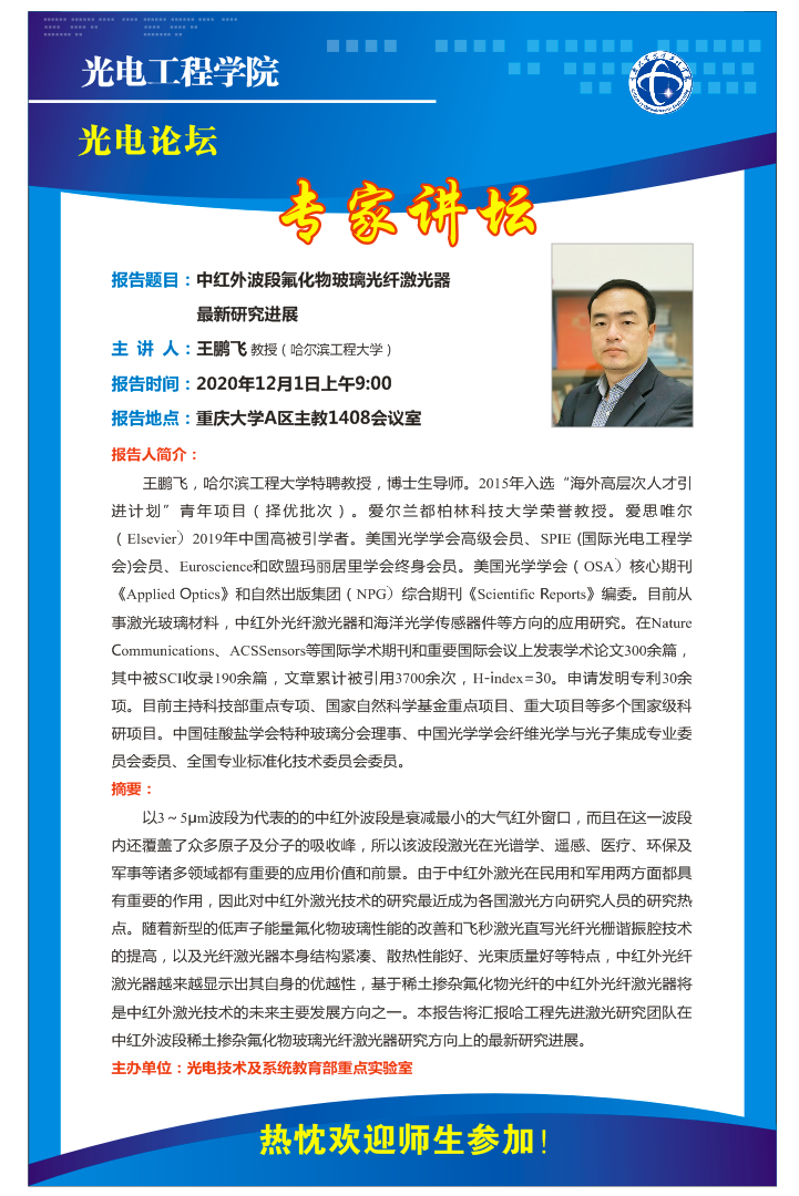 【光电论坛】中红外波段氟化物玻璃光纤激光器最新研究进展