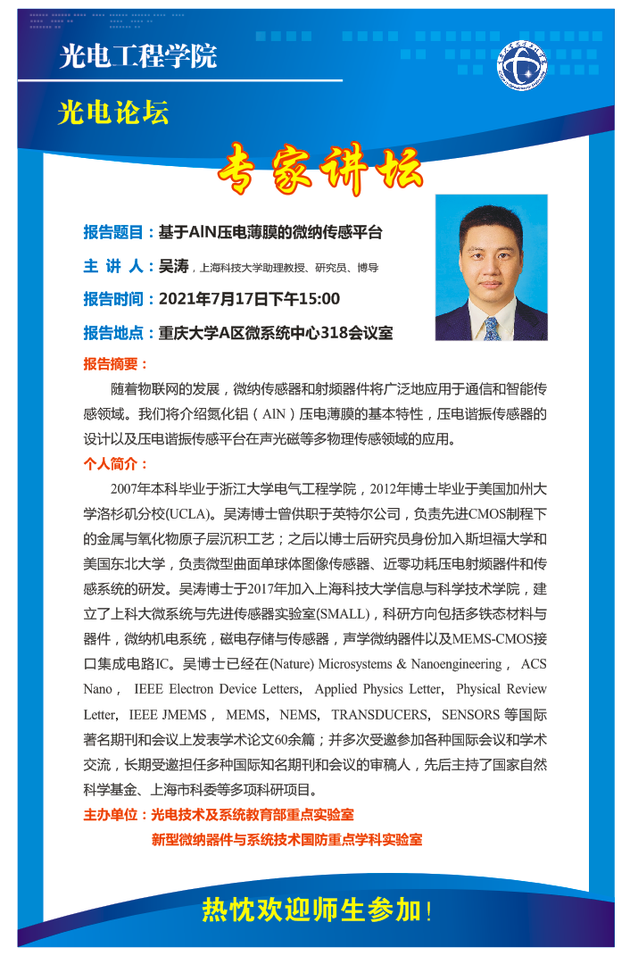 【光电论坛】基于AlN压电薄膜的微纳传感平台