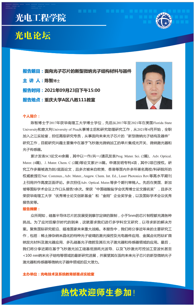 【光电论坛】面向光子芯片的新型微纳光子结构材料与器件