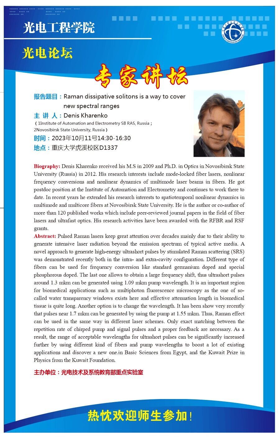 【光电论坛】Raman dissipative solitons is a way to cover new spectral ranges