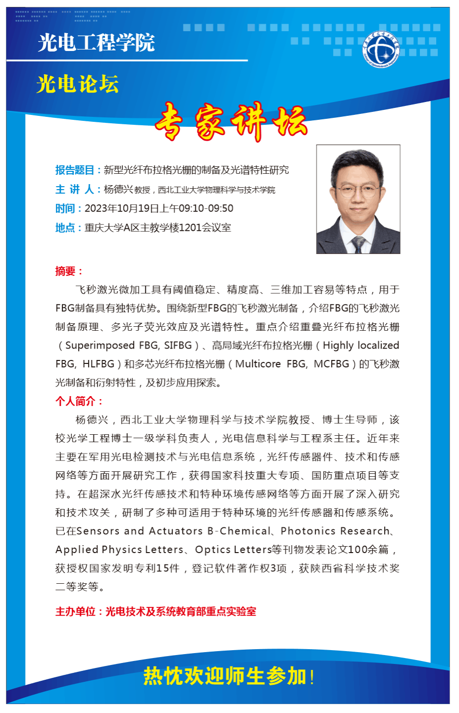【光电论坛】新型光纤布拉格光栅的制备及光谱特性研究