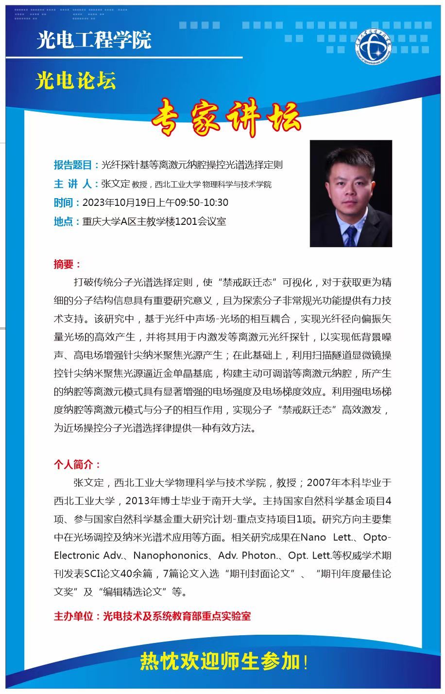 【光电论坛】光纤探针基等离激元纳腔操控光谱选择定则