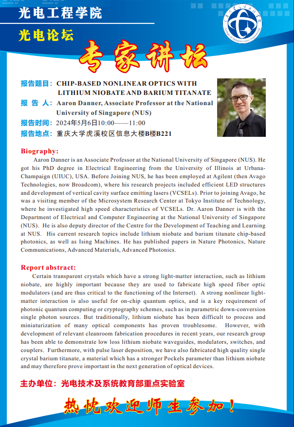 【光电论坛】CHIP-BASED NONLINEAR OPTICS WITH LITHIUM NIOBATE AND BARIUM TITANATE