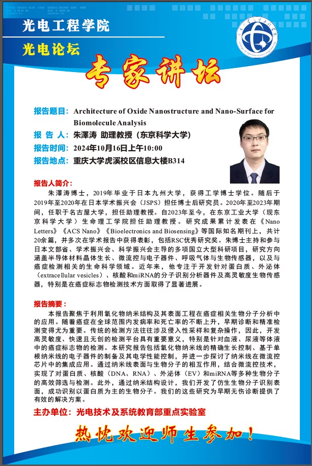 【光电论坛】Architecture of Oxide Nanostructure and Nano-Surface for Biomolecule Analysis