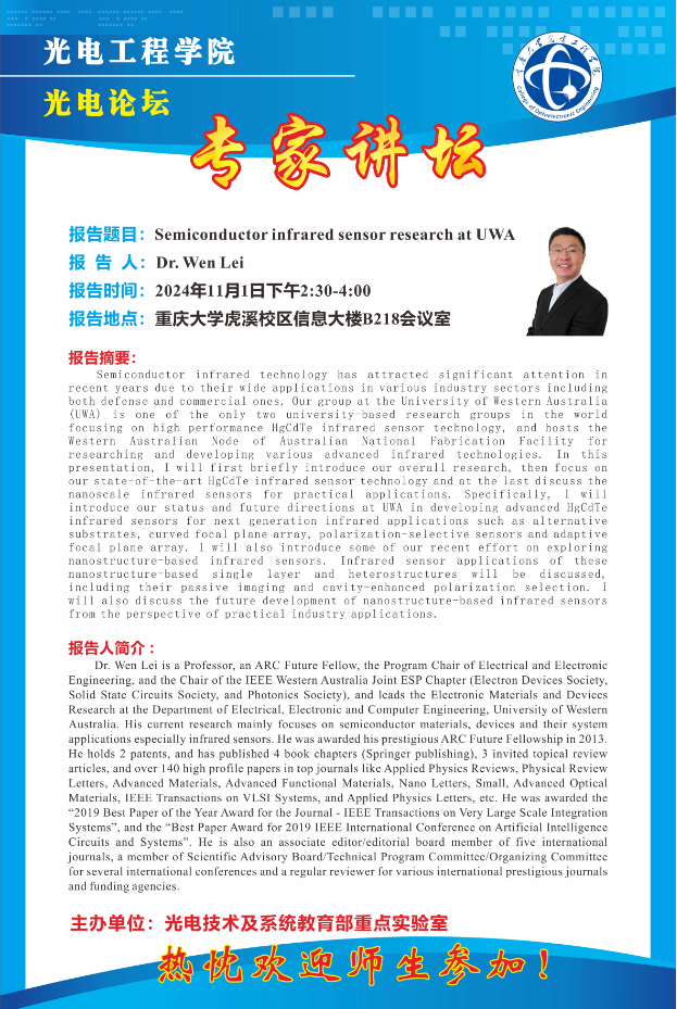 【光电论坛】Semiconductor infrared sensor research at UWA