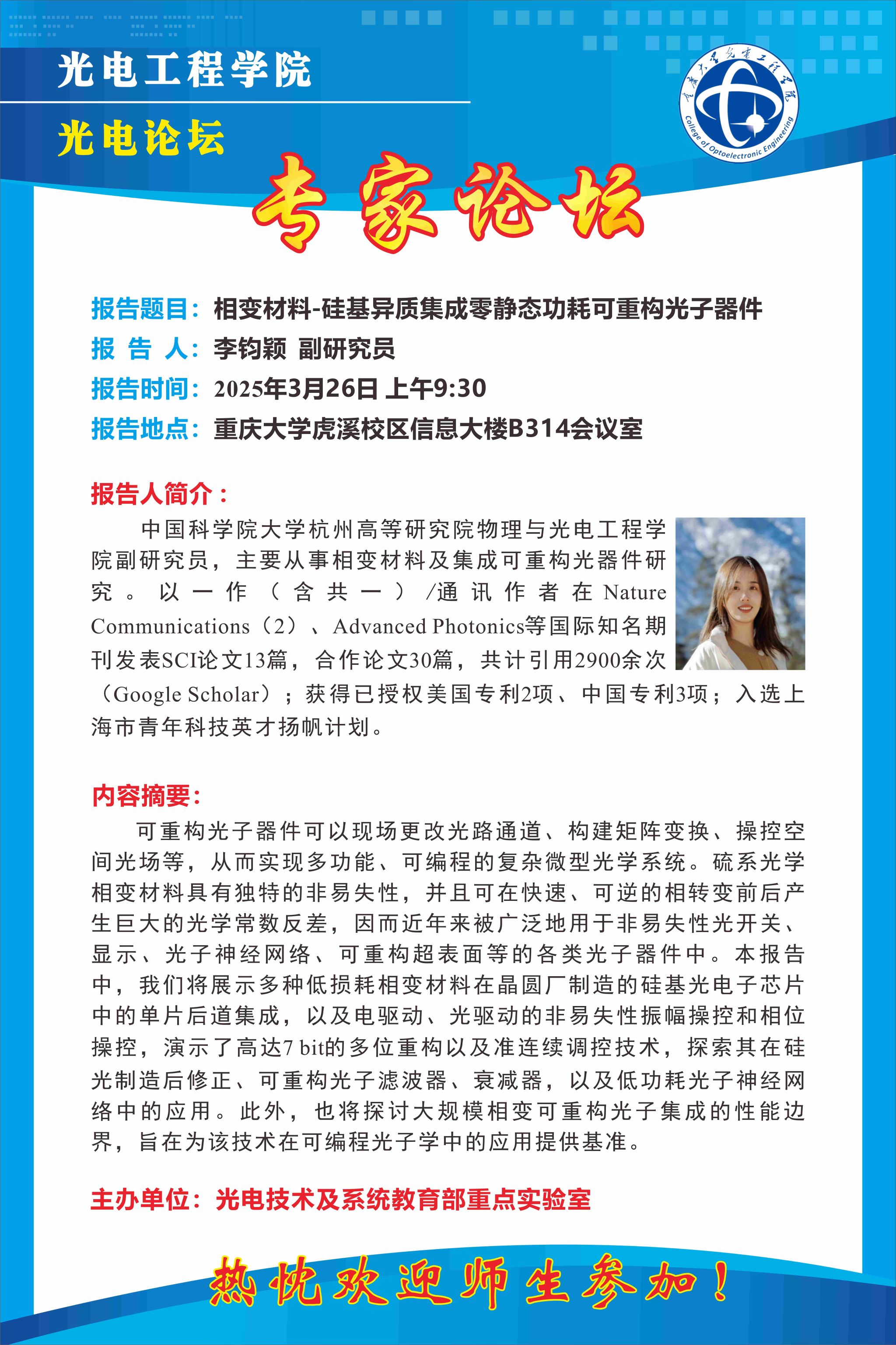 【光电论坛】相变材料-硅基异质集成零静态功耗可重构光子器件