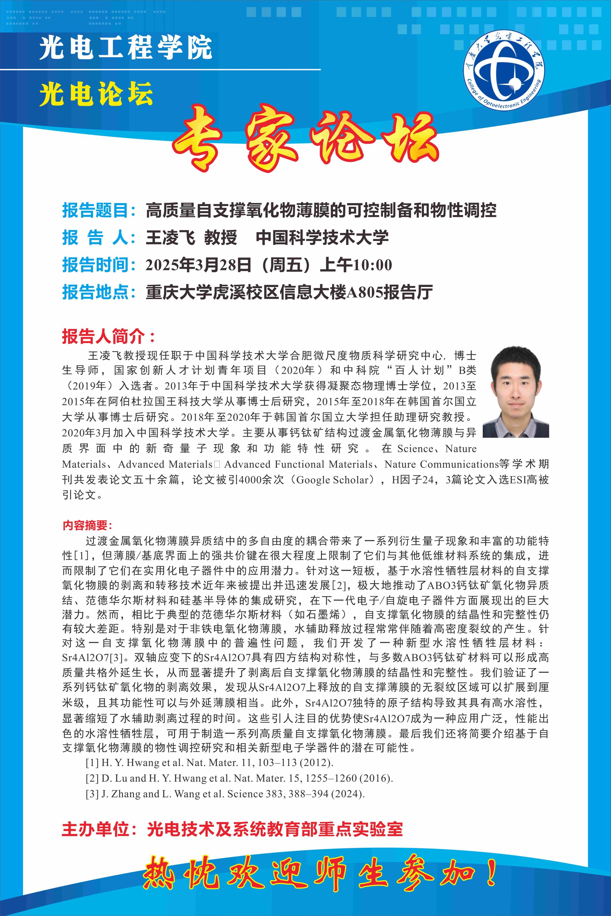 【光电论坛】高质量自支撑氧化物薄膜的可控制备和物性调控