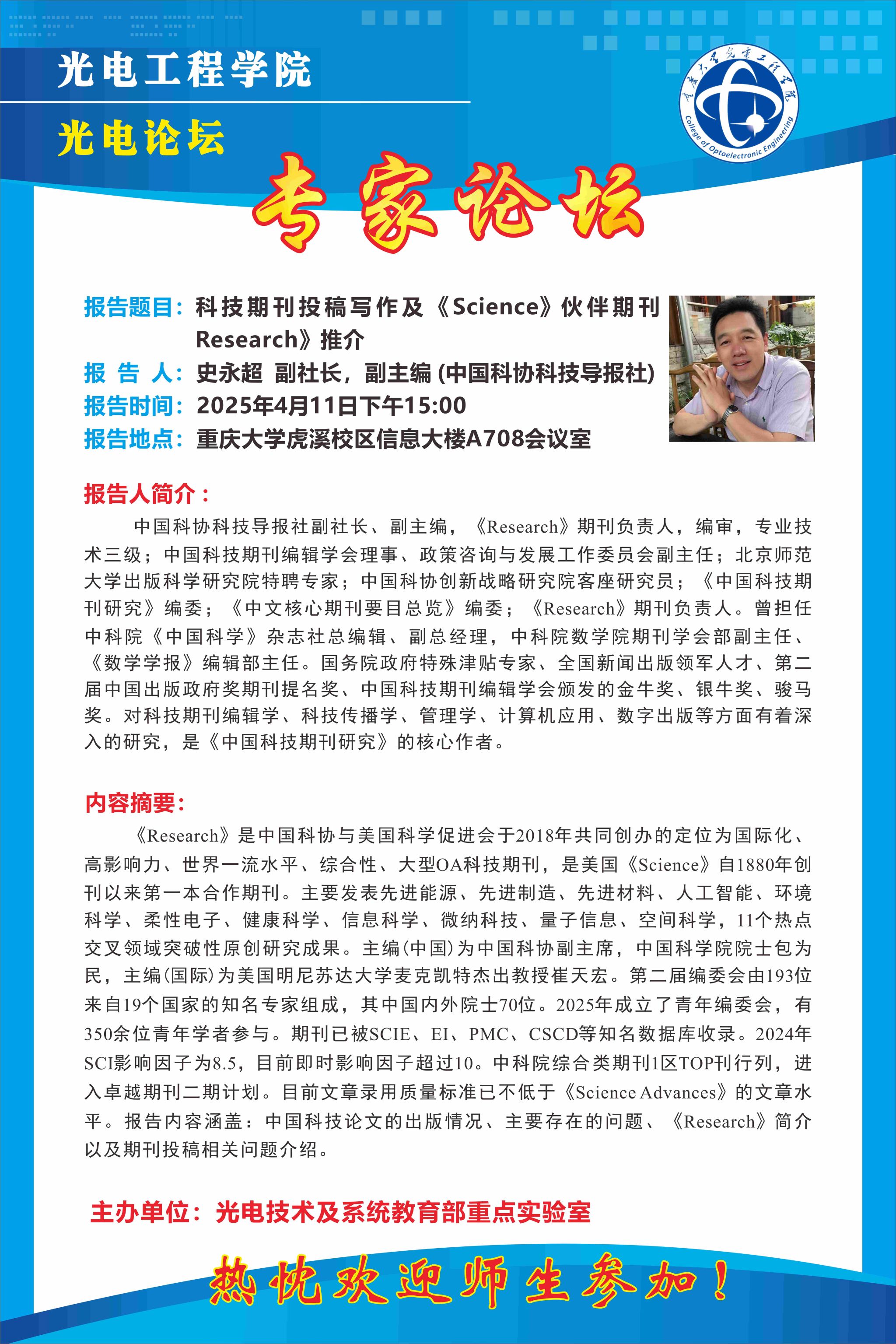 【光电论坛】科技期刊投稿写作及《Science》伙伴期刊《Research》推介